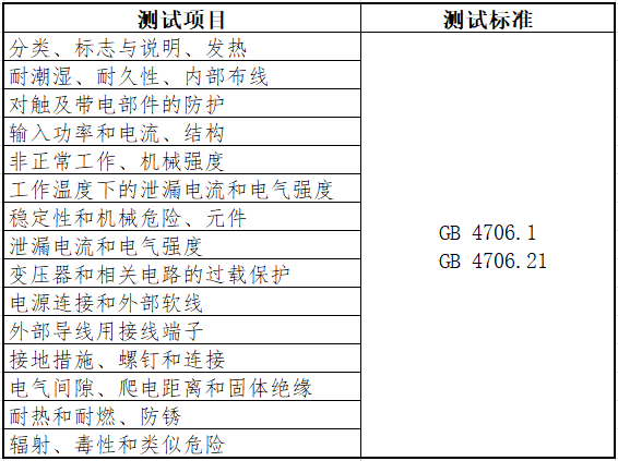 测试项目与标准