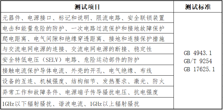 测试项目与标准
