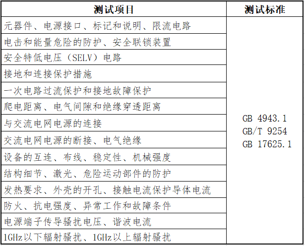 测试项目与标准