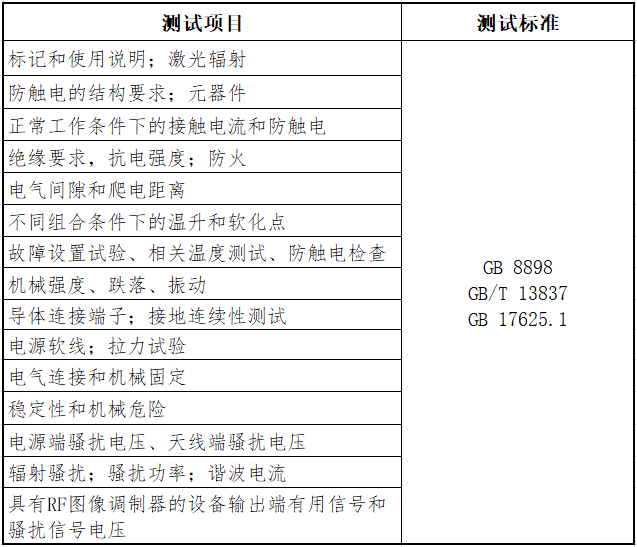 测试项目与标准