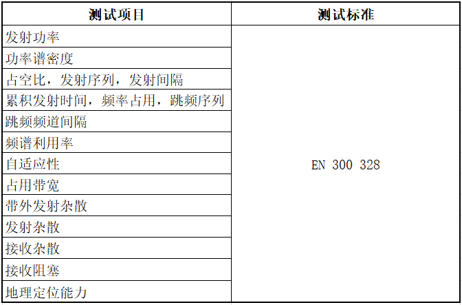 测试项目与标准