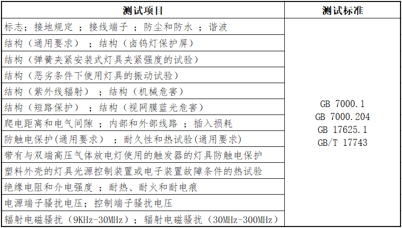 测试项目与标准