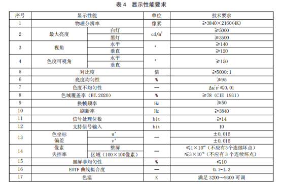 系统显示性能应符合表4的要求。