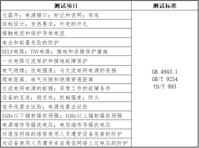 测试项目与标准